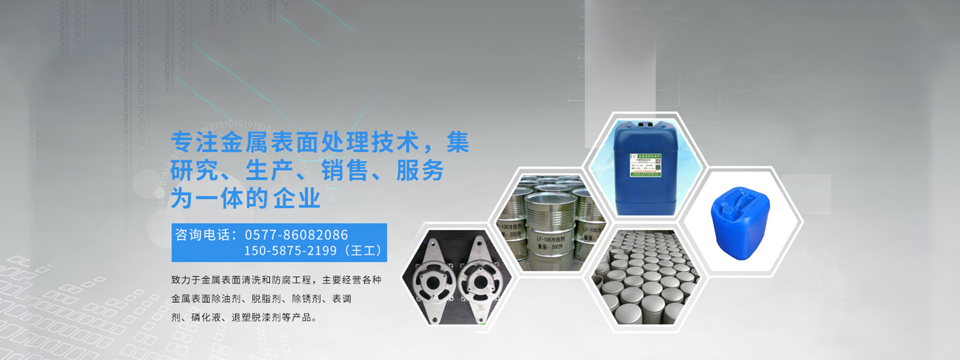溫州龍飛環(huán)保科技有限公司致力于金屬表面清洗和防腐工程,主要經(jīng)營各種金屬表面除油劑、脫脂劑、除銹劑、表調(diào)劑、磷化液、退塑脫漆劑、除蠟水、防銹水防銹油、封閉劑、鈍化劑、發(fā)黑劑、著色劑、化學拋光劑、合成乳化劑、水處理劑等金屬表面處理劑